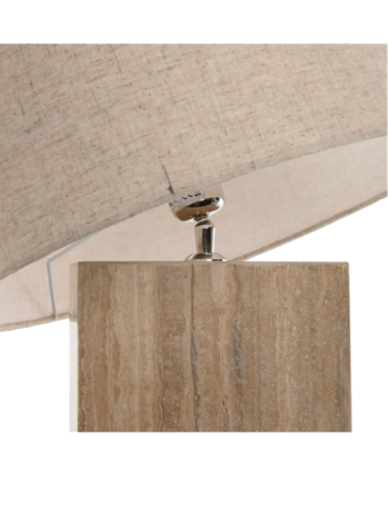 Elegant Travertine Base Table Lamp with Linen Shade